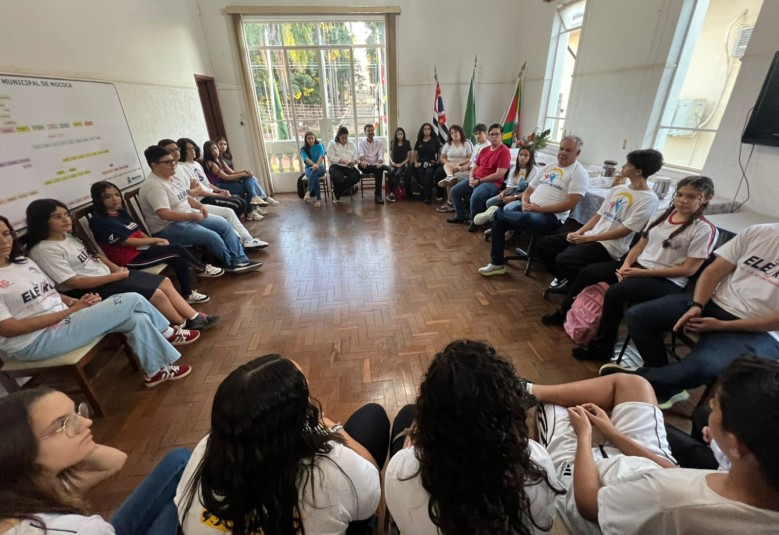 Durante a reunião, os estudantes se apresentaram, fizeram perguntas e propuseram ideias de ações voltadas para a juventude mocoquense. A Professora Cynthia Trepodoro, que acompanha de perto o grupo, registrou as principais demandas apresentadas, reforçando o compromisso com a continuidade dos trabalhos.