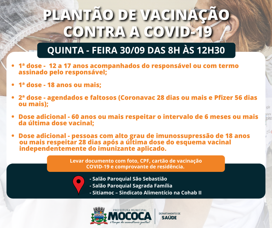 A vacinação contra a Covid-19 segue na Cidade de Mococa, confira os grupos que estão sendo vacinados.