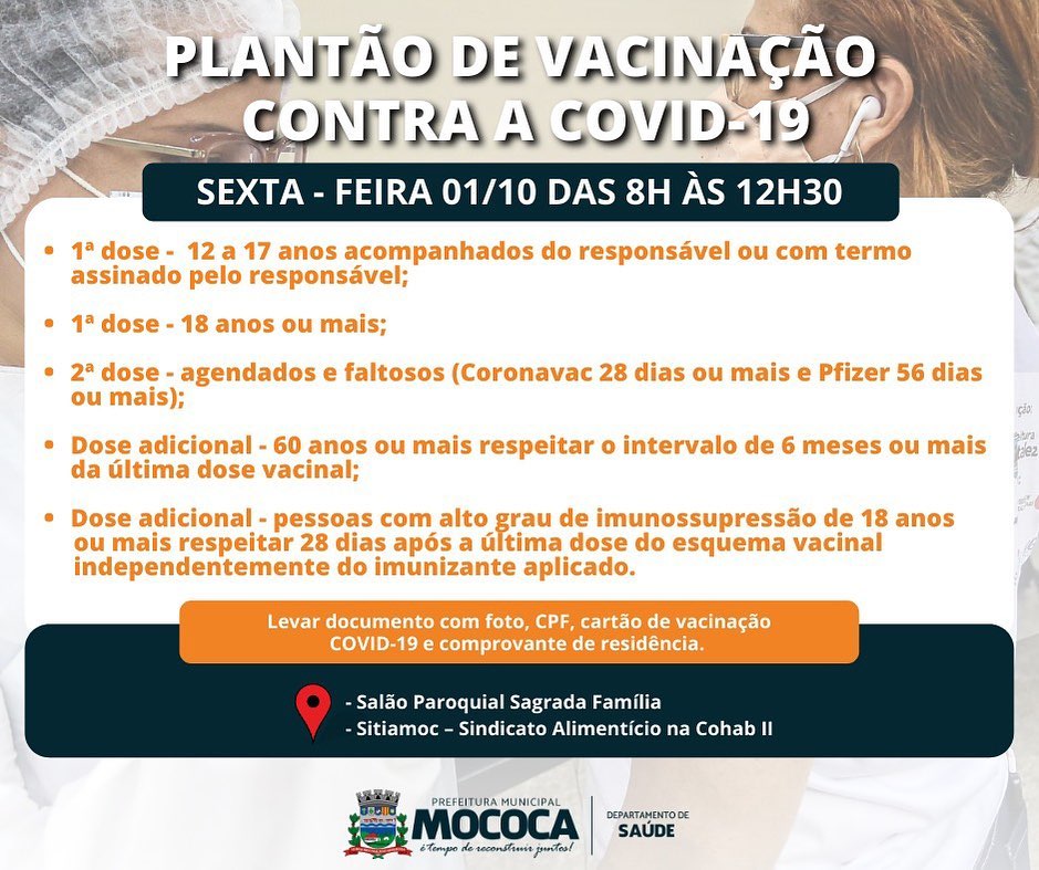 VACINAÇÃO CONTRA COVID-19 NA SEXTA-FEIRA, DIA 01/10/2021