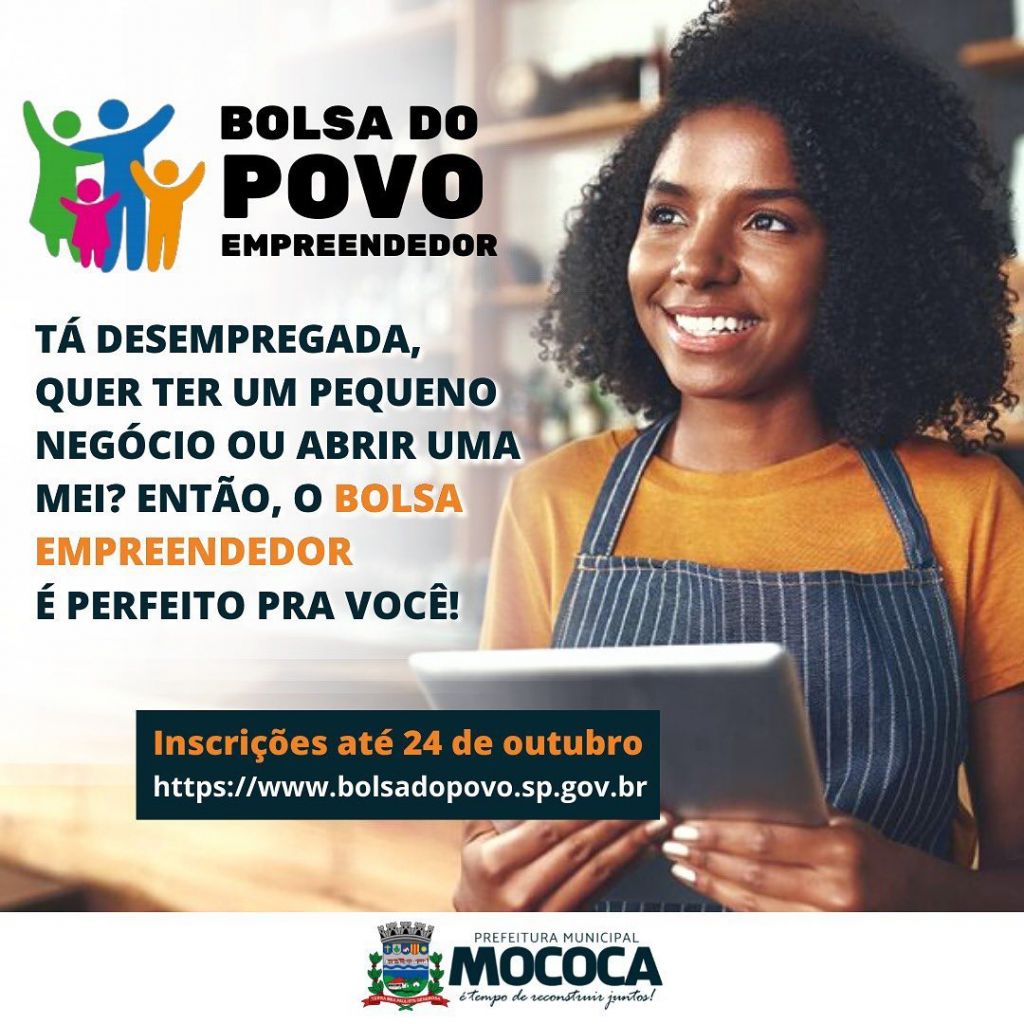 Inscrições abertas de 14 a 24 de outubro no site do Bolsa do Povo - https://www.bolsadopovo.sp.gov.br/BolsaEmpreendedor/index
