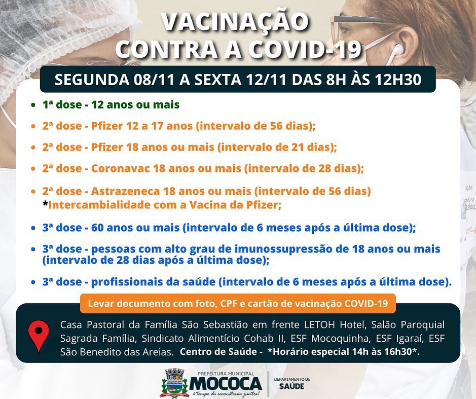 A vacinação contra a Covid-19 segue na Cidade de Mococa, confira os grupos que estão sendo vacinados.
