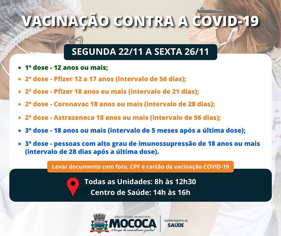 A vacinação contra a Covid-19 segue na Cidade de Mococa, confira os grupos que estão sendo vacinados.