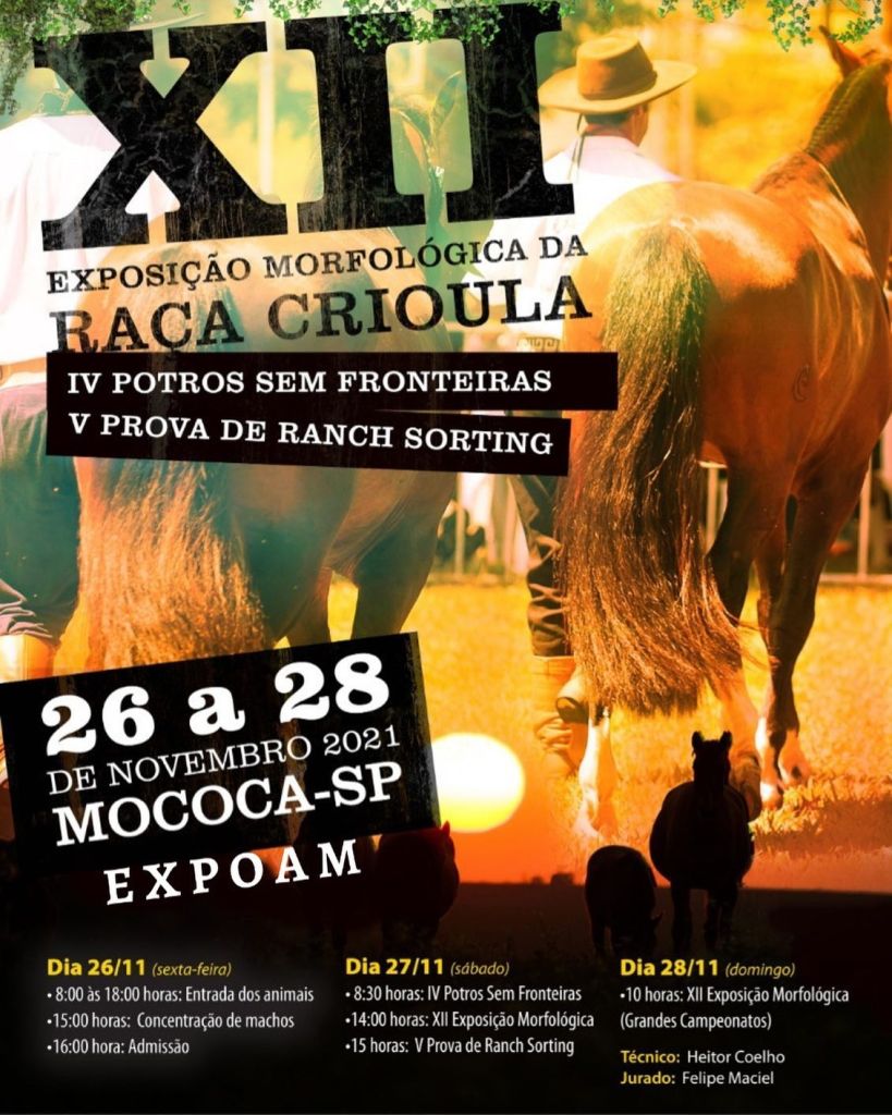 A Prefeitura Municipal de Mococa convida toda população mocoquense para participar da 12ª Exposição Morfológica de Raça Crioula e 1ª Copa de Marcha de Mococa, a serem realizadas no Parque de Ecológico e de Exposição – a EXPOAM, nos dias 26, 27 e 28 de novembro.