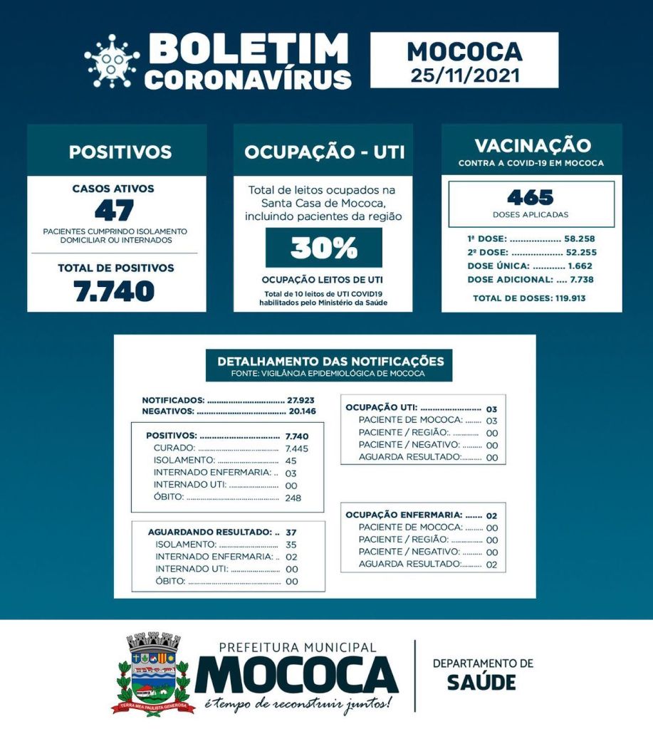 Informações referentes ao Boletim Epidemiológico - COVID 19 do dia 25/11/2021