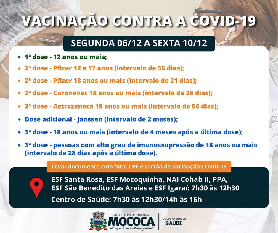 VACINAÇÃO CONTRA A COVID-19 EM MOCOCA - 06/12 a 10/12