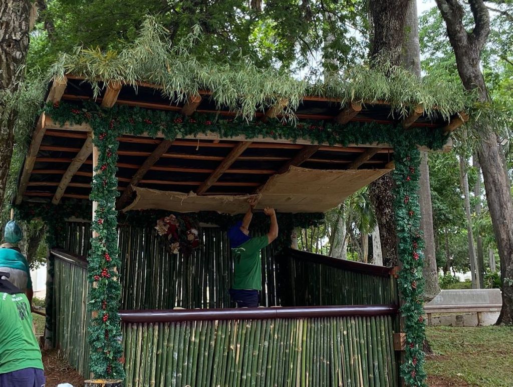 Estão sendo realizados serviços como a revitalização da pintura do coreto, a instalação de luzes de LED nos arredores e no próprio coreto, assim como também está sendo realizada a montagem do presépio.