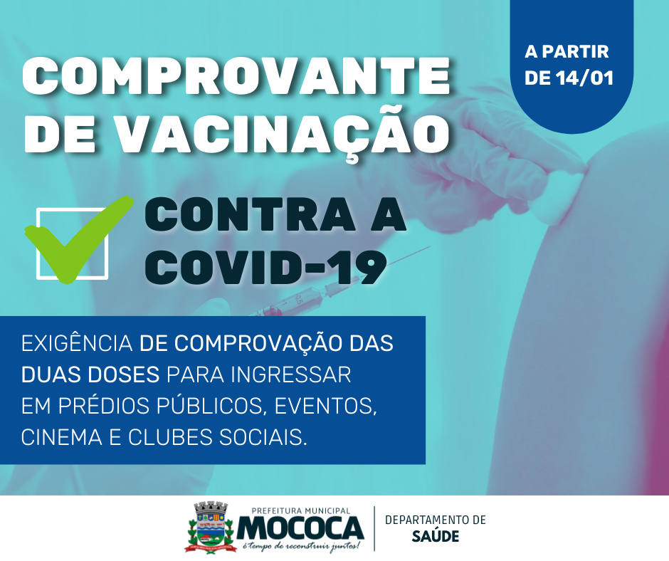 A partir dessa sexta-feira, 14, será obrigatória a apresentação de comprovante de vacina das duas doses ou dose única (de acordo com o imunizante) contra a COVID-19 para acessar prédios públicos, eventos, cinema e clubes sociais. Nos estabelecimentos particulares é obrigação dos responsáveis organizarem esse controle de acesso.