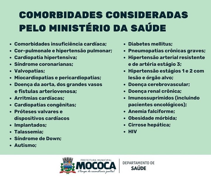 Mococa recebeu 300 doses de vacinas contra a COVID-19 destinadas para as crianças na faixa etária dos 05 a 11 anos. Nessa primeira etapa serão priorizadas as crianças com comorbidades, pré-determinadas pelo Ministério da Saúde. As doses serão aplicadas a partir da próxima quarta-feira, 19. O horário e local será divulgado pelo Departamento de Saúde. Atenção aos pais e responsáveis: é necessário levar o CPF e Cartão SUS da criança, bem como receita ou relatório médico (qualquer documento que a família já tenha). Importante realizar o cadastro antecipado no site www.vacinaja.sp.gov.br.