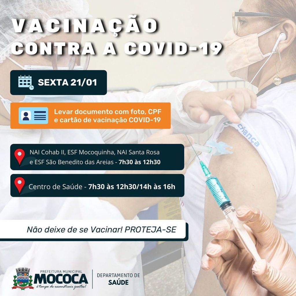 VACINAÇÃO CONTRA A COVID-19 EM MOCOCA – SEXTA 21/01