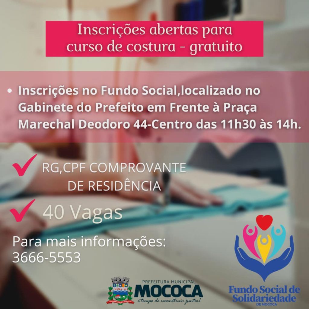 As inscrições para o curso de costura oferecido pelo Fundo Social de Solidariedade já estão abertas e são limitadas a 40 vagas para aqueles em situação de vulnerabilidade social. Para se inscrever basta se dirigir até o Fundo Social que fica no Gabinete Municipal em frente à Praça Marechal Deodoro 44 – Centro, com o seu comprovante de residência, RG e CPF.