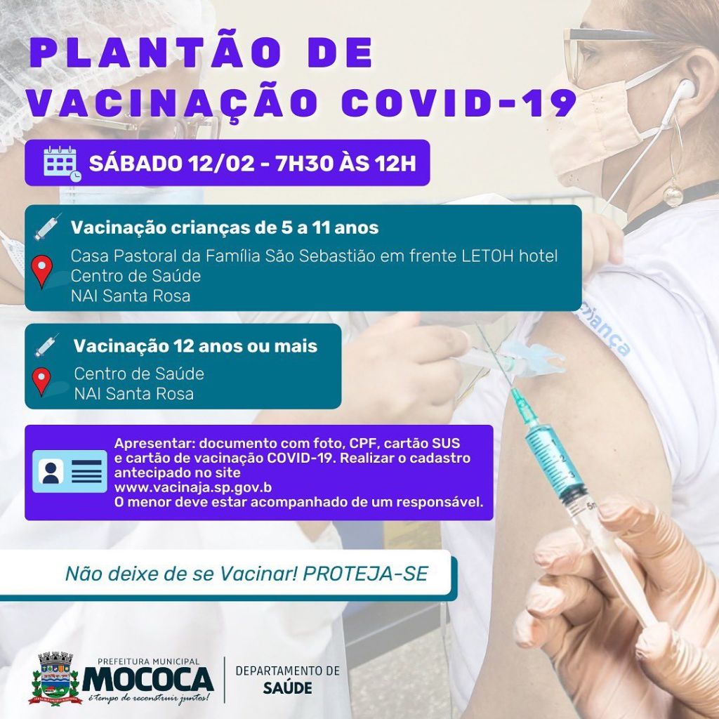 A Prefeitura Municipal de Mococa estará realizando plantão de vacinação neste sábado em adultos e crianças.