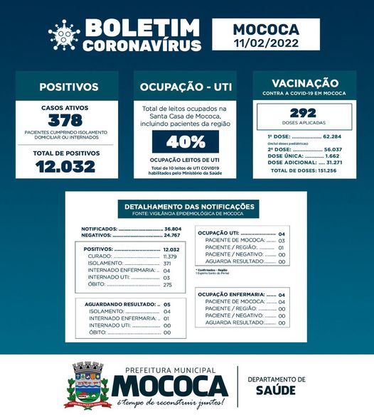 Boletim Epidemiológico - COVID 19 do dia 11/02/2022