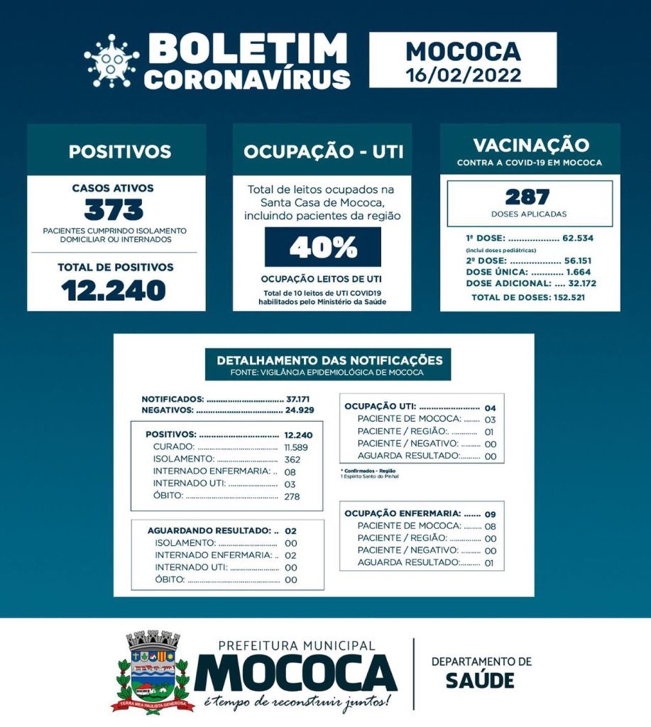 Boletim Epidemiológico - COVID 19 do dia 16/02/2022