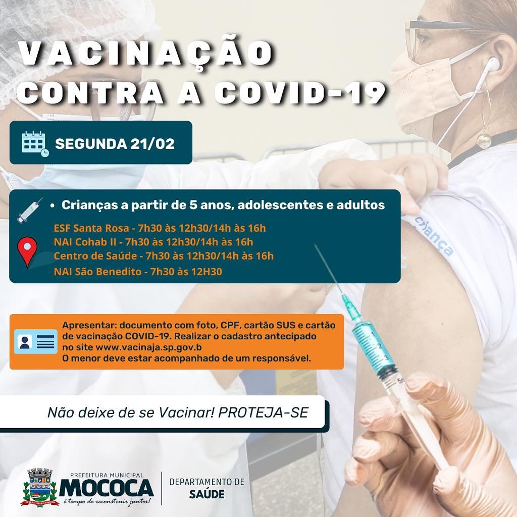 VACINAÇÃO COVID - 19 EM MOCOCA – ATENÇÃO AOS LOCAIS E HORÁRIOS