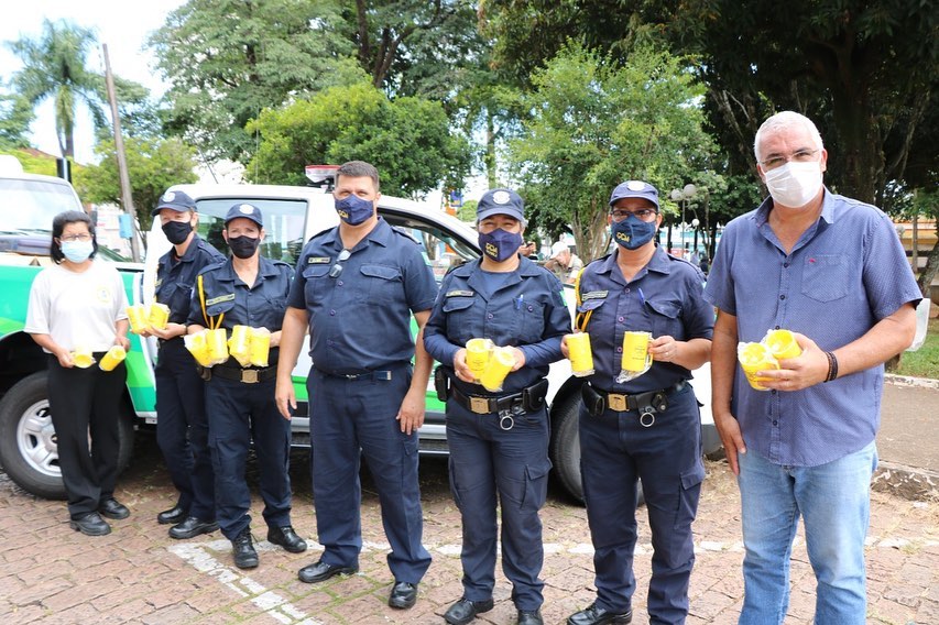 As equipes de Trânsito e da GCM estiveram na rua em frente à Praça do Rosário realizando a entrega de canecas personalizadas para as mulheres que passavam no local de carro.