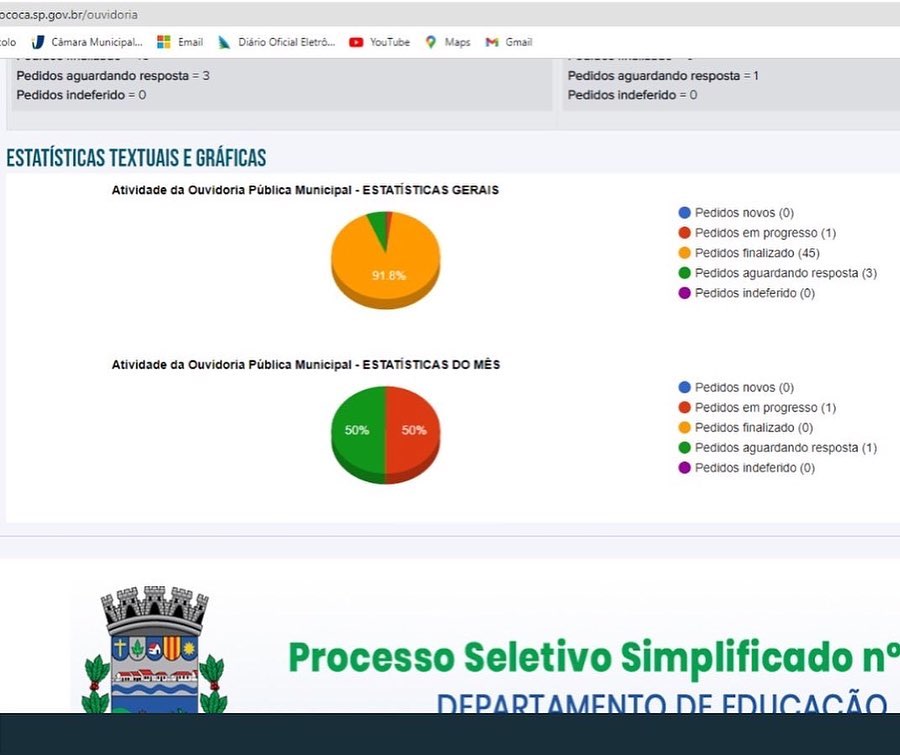 98% dos pedidos que entraram na Ouvidoria foram finalizados e você pode ainda acompanhar o balanço das ações através das estatísticas divulgadas no site da Prefeitura Municipal de Mococa acessando a aba deste serviço.