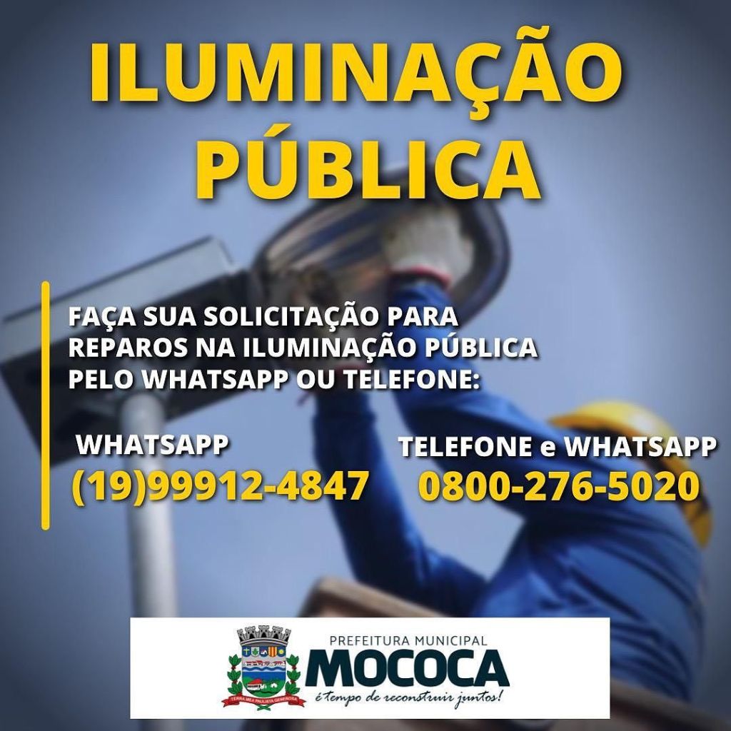 A PREFEITURA MUNICIPAL DE MOCOCA INFORMA O CONTATO DA NOVA EMPRESA DE MANUTENÇÃO DE ILUMINAÇÃO PÚBLICA