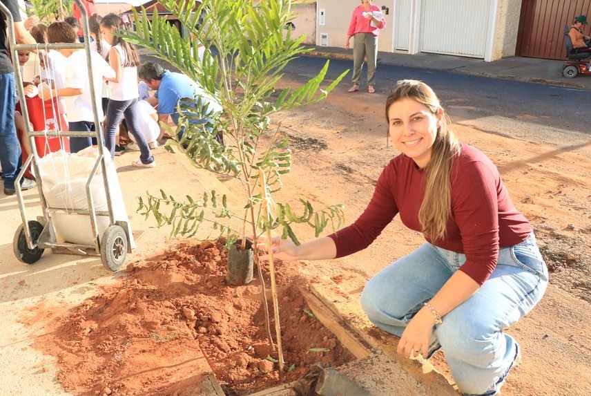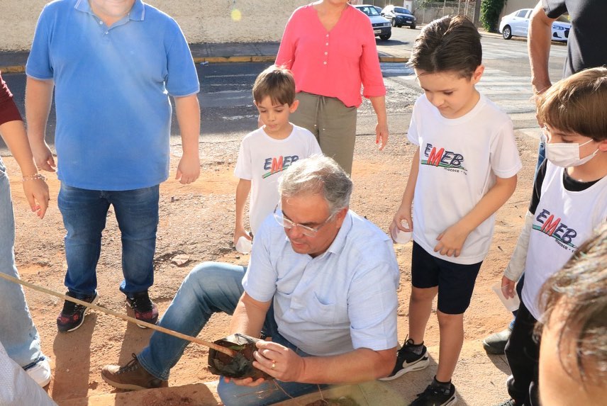 E foram com as mãos na terra que os alunos do primeiro ano da Escola José Barreto Coelho terminaram a sexta-feira, 24, com o plantio das mudas de árvores na calçada da escola.