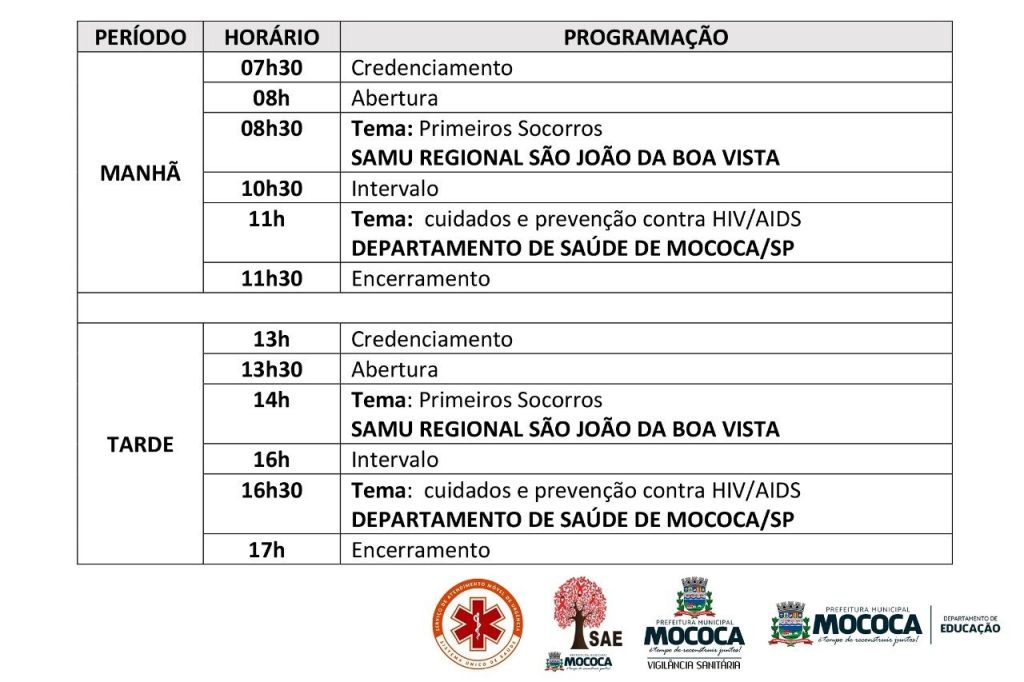 O Departamento de Educação da Prefeitura Municipal de Mococa em parceria com Departamento de Saúde e o SAMU Regional de São João da Boa Vista, realizará no dia 26 de julho na Associação Esportiva Mocoquense a capacitação em noções básicas de primeiros socorros para todos profissionais da área da educação.