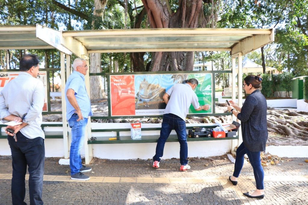 Os Departamentos de Cultura e Turismo, Comunicação, Trânsito e Limpeza Pública iniciaram nesta sexta-feira, 15, um projeto teste nos pontos de ônibus.
