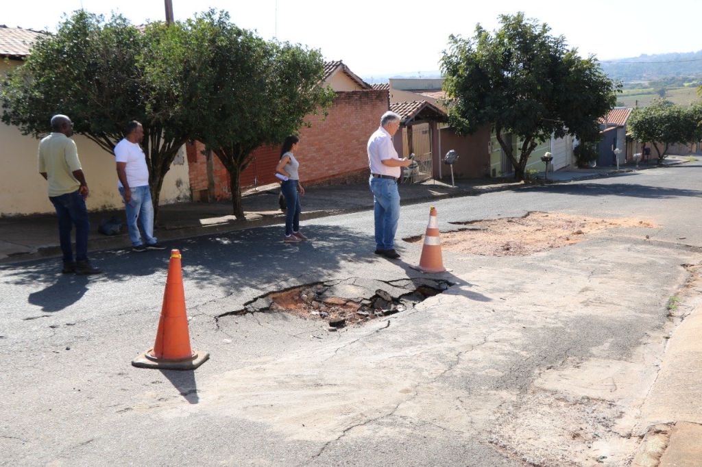 O asfalto cedeu o que causou grandes buracos na via, originado pelas galerias de águas pluviais, um contratempo que já era para ter sido consertado e estendeu-se por anos, prejudicando o deslocamento dos moradores do bairro.