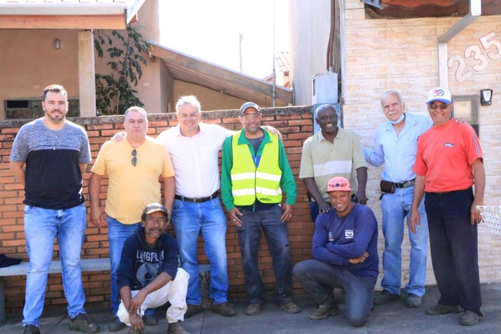 O Prefeito Eduardo Barison encontrou-se com a equipe de pavimentação da Prefeitura Municipal de Mococa na COHAB II.