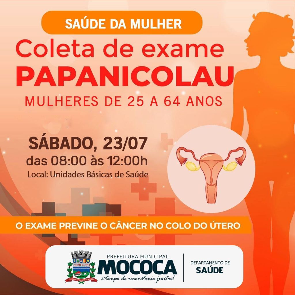 As Unidades Básicas de Saúde de Mococa estarão abertas no sábado, 23, para a coleta de exames de Papanicolau em mulheres na faixa etária de 25 a 64 anos.