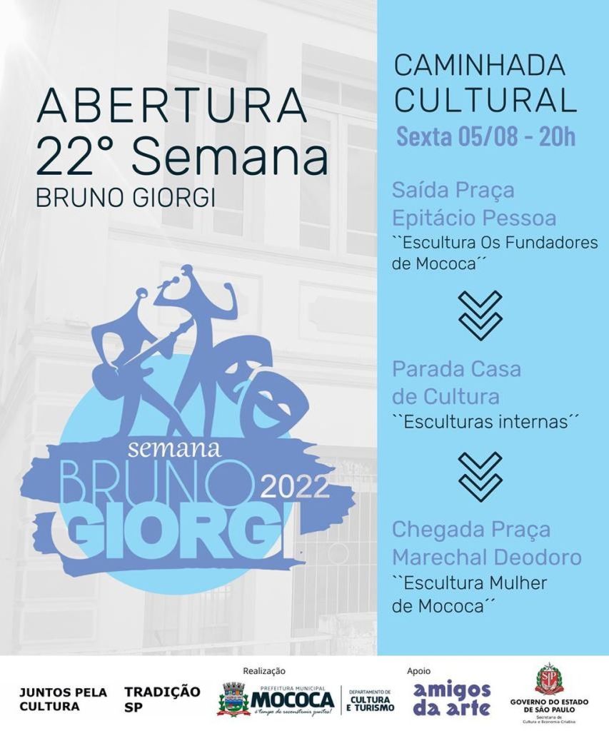 Para prestigiar o escultor e artista mocoquense Bruno Giorgi, o Departamento de Cultura e Turismo da Prefeitura Municipal de Mococa celebra a 22ª edição da Semana Bruno Giorgi.