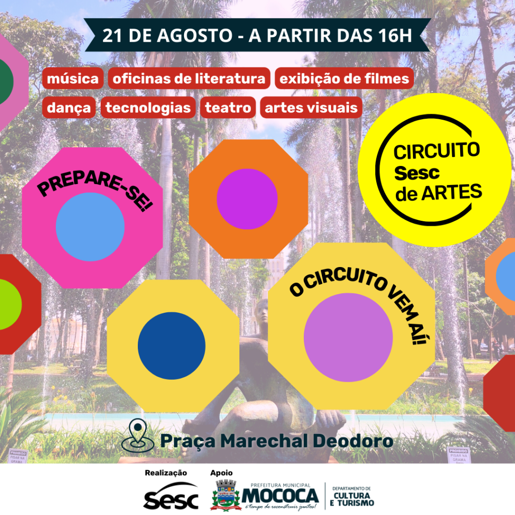 É nessa vibe que a cidade de Mococa receberá no dia 21 de agosto à partir das 16h na Praça Marechal Deodoro, a 12ª edição do Circuito Sesc de Artes.