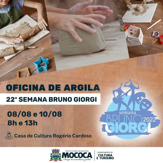 O Departamento de Cultura e Turismo da Prefeitura Municipal de Mococa convida a todos para participar da oficina de argila com a professora Rosa Vaz.