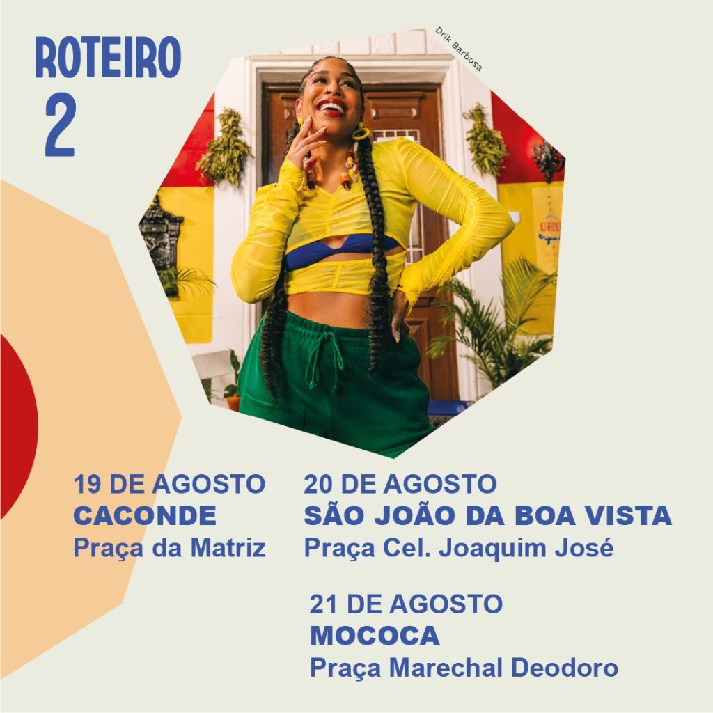 E Mococa receberá a Cantora DRIK BARBOSA, na Praça da Matriz, na programação do Circuito SESC de Artes.