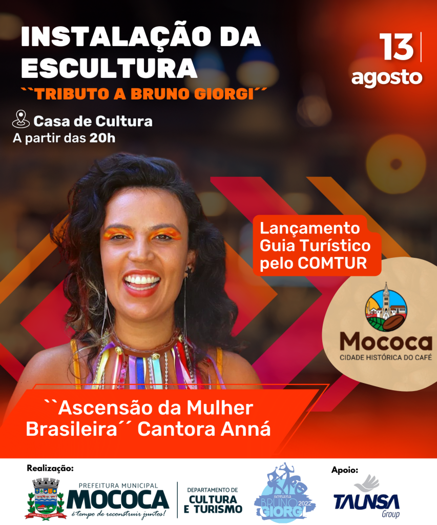Com uma agenda cultural programada para o mês inteiro de agosto, no sábado (13) às 20h, na Casa de Cultura “Rogério Cardoso”, será instalada a belíssima escultura doada pelo célebre e renomado escultor Caciporé Torres. A obra presta um tributo ao amigo do também escultor mocoquense Bruno Giorgi, será um momento marcante para a história da cidade e todos vocês são nossos convidados.