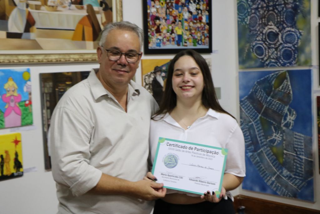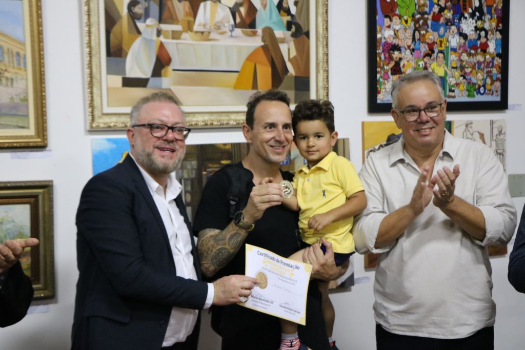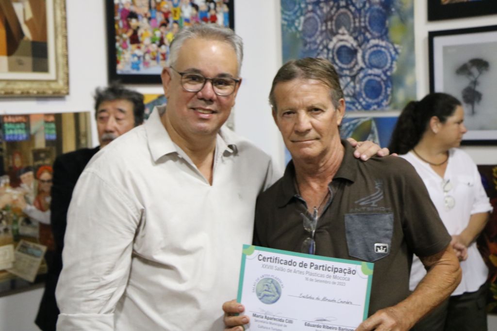 As Medalhas Bruno Giorgi, que honram o legado e a excelência artística do renomado escultor brasileiro, foram entregues aos talentosos artistas plásticos que se destacaram na presente edição do Salão. A cerimônia de entrega das medalhas e dos certificados foi conduzida pelo Excelentíssimo Senhor Prefeito Eduardo Barison e pela Cida Cilli, Secretária de Cultura do Município, ambos atuando como representantes da Prefeitura de Mococa. A presença destes líderes no evento evidencia o compromisso do poder público com a promoção e valorização da cultura local.