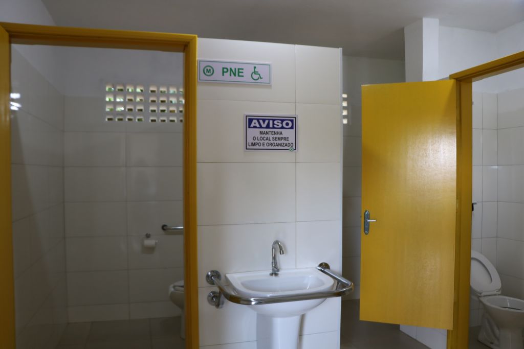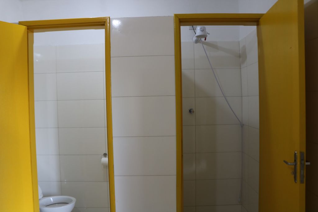 - Um banheiro masculino e um feminino, cada um equipado com um banheiro PNE (Pessoas com Necessidades Especiais), um banheiro padrão e uma ducha quente.