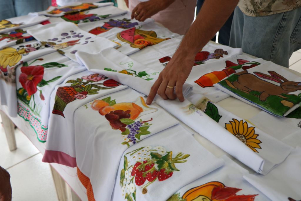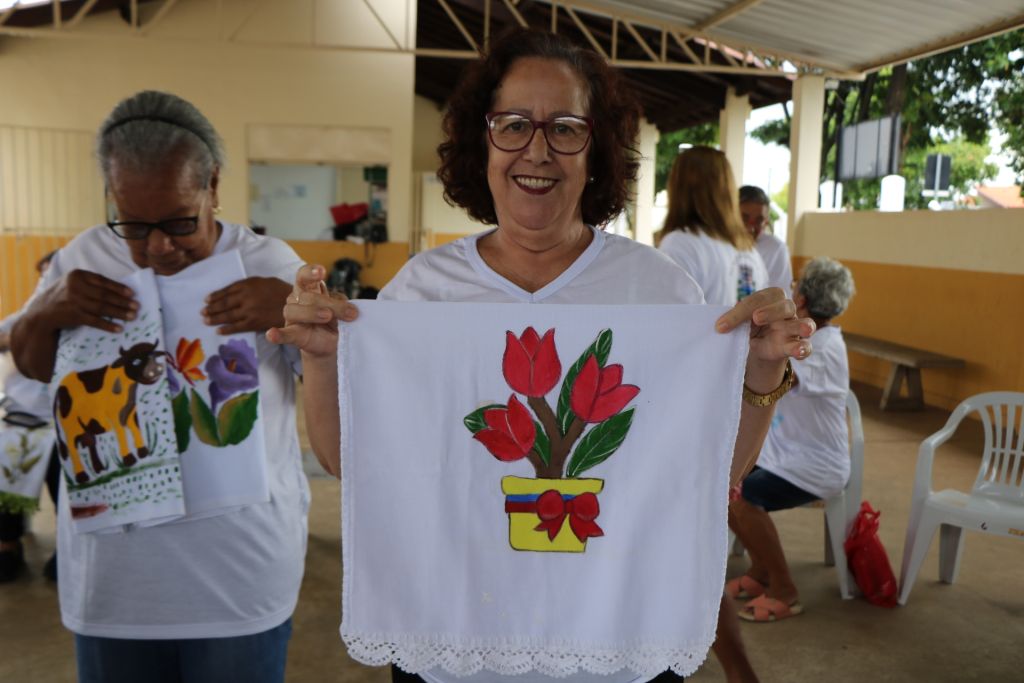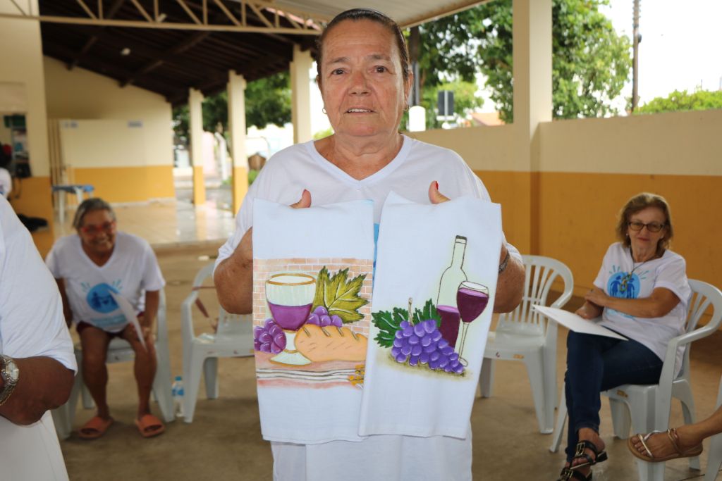 Ofertado em parceria com o Senac, o curso de pintura em tecido proporcionou aos idosos uma jornada enriquecedora de aprendizado, criatividade e expressão artística. Durante a formatura, os formandos tiveram a oportunidade de apresentar as obras resultantes desse processo, representando não apenas talento artístico, mas também o esforço e dedicação ao longo do curso.